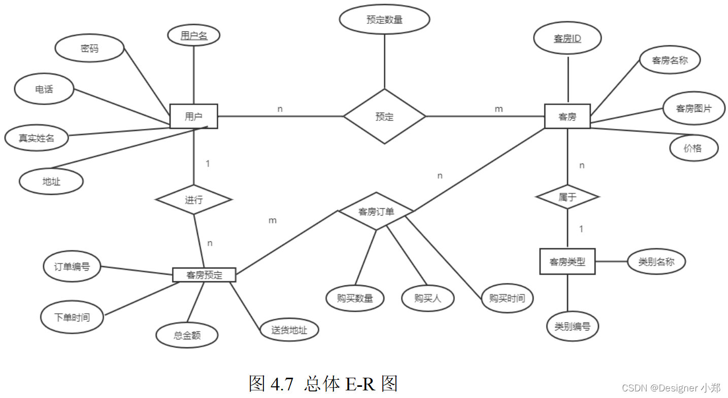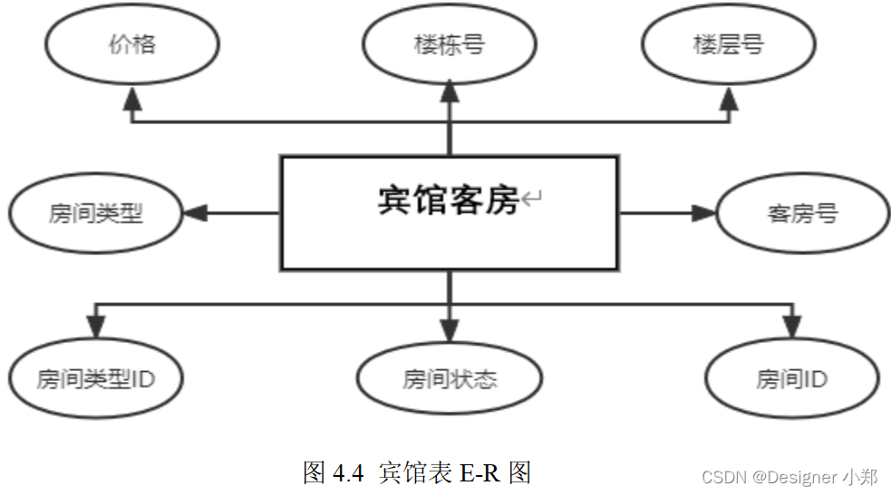 针对宾馆入住、退住环节的具体需求,上文已对宾馆管理系统的五大模块进行详细设计,接着我将对每个模块都进行数据库的设计,并且通过E-R图来进行展示。