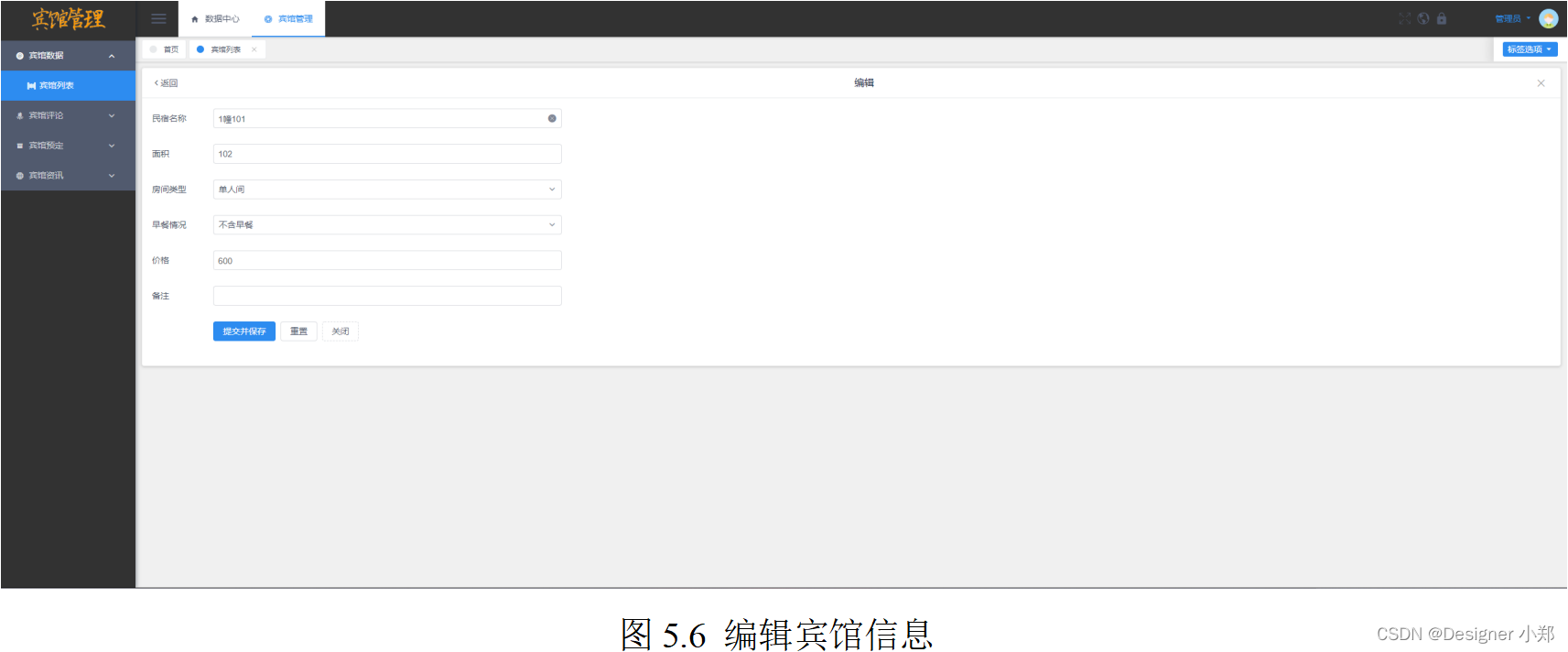 管理员也可以点击每一行的编辑按钮,更新宾馆的基本信息,如图5.6所示。