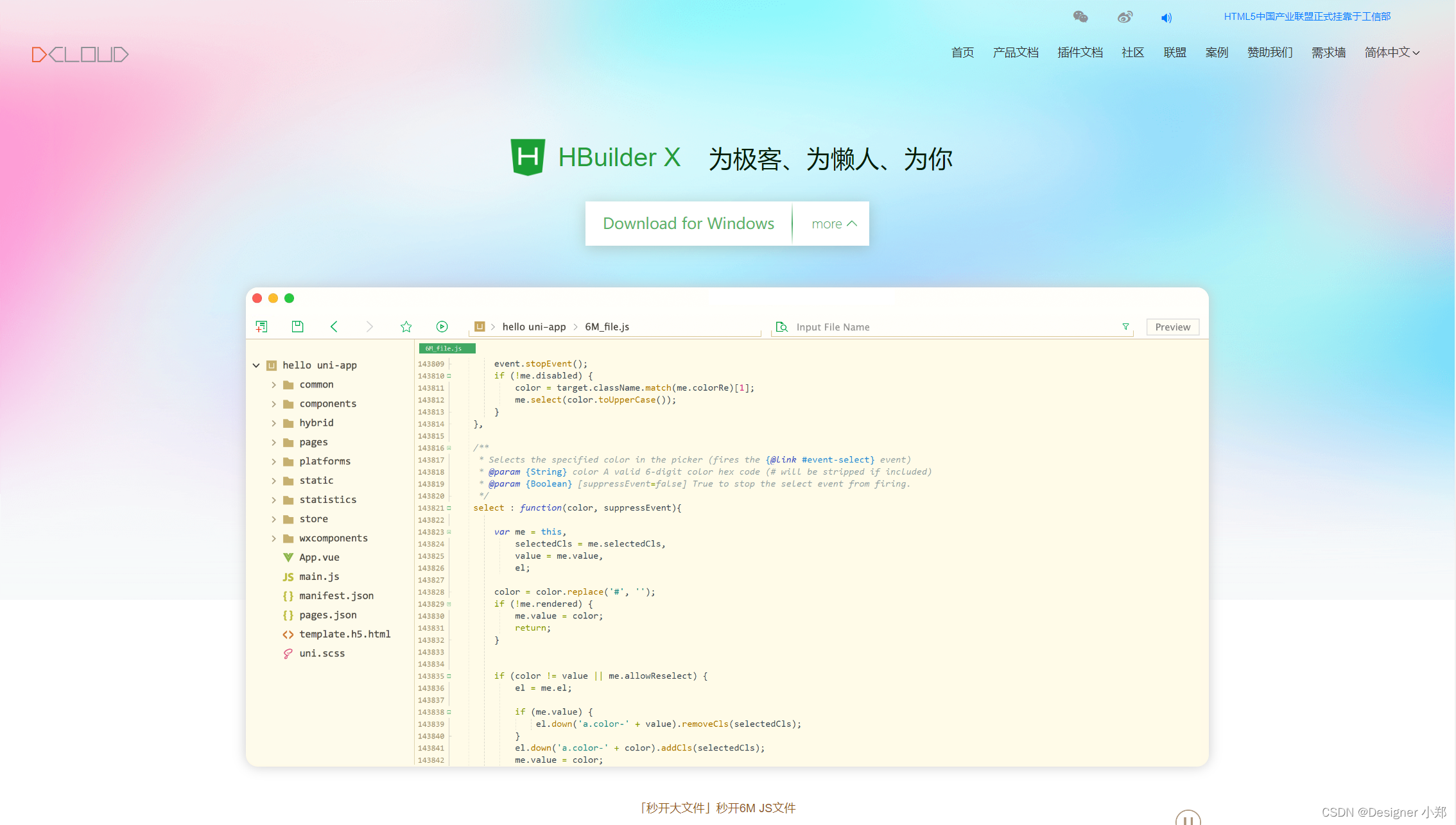 HBuilder X是一款基于Vue.js语法的跨平台开发工具,能够帮助开发者快速地构建各种类型的应用程序。它内置了丰富的组件和API接口,支持多种UI框架和第三方插件,可以轻松实现复杂的业务逻辑和用户界面设计。