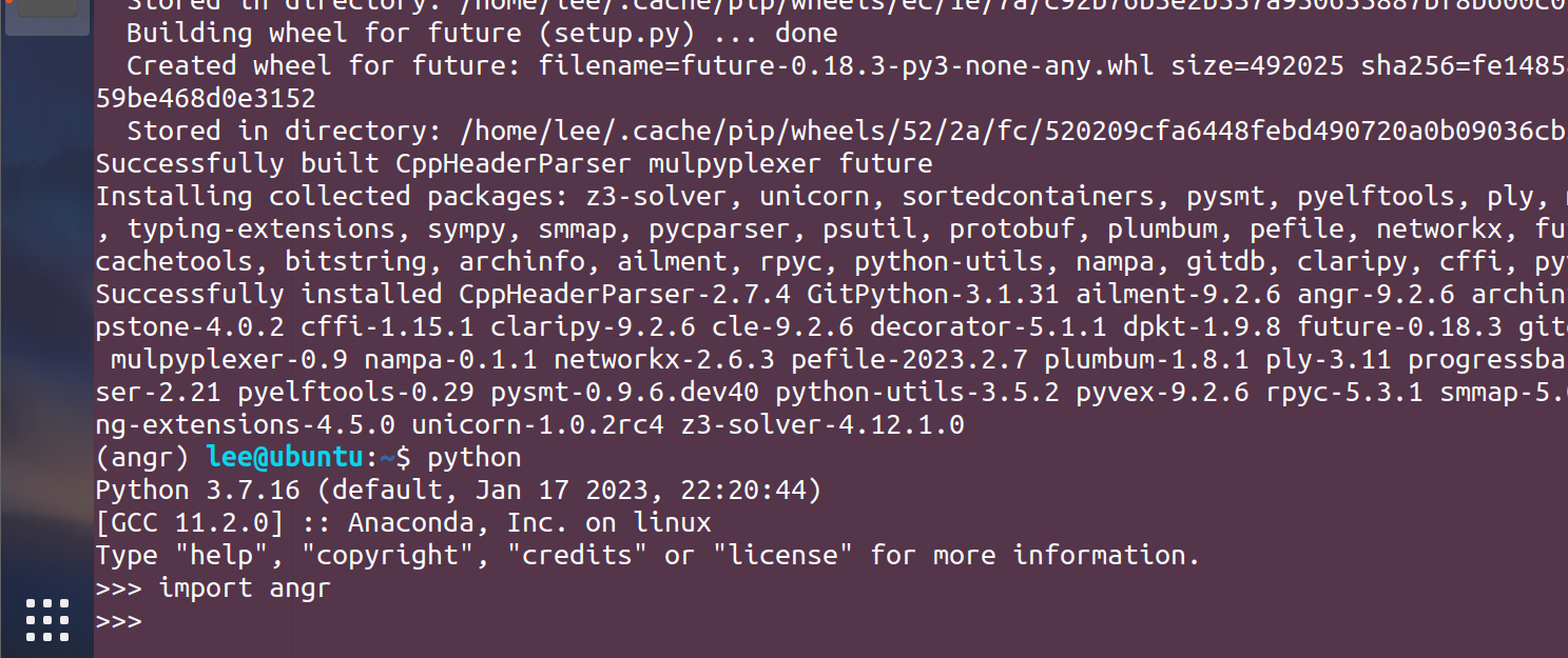 进入环境安装angr: