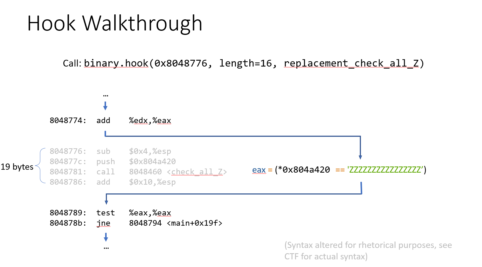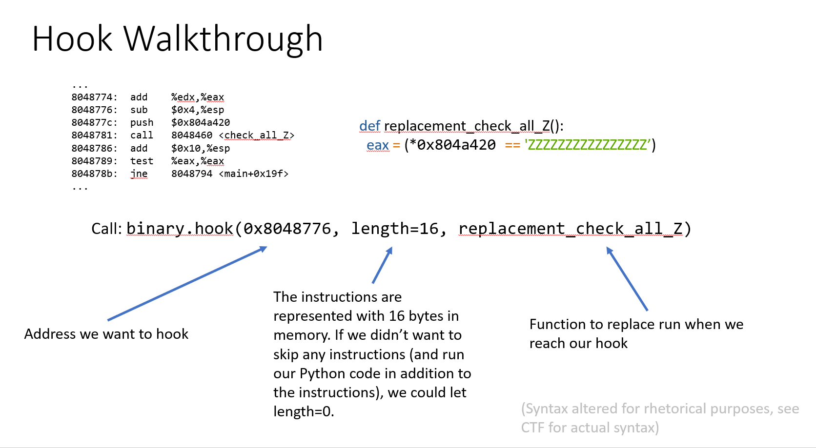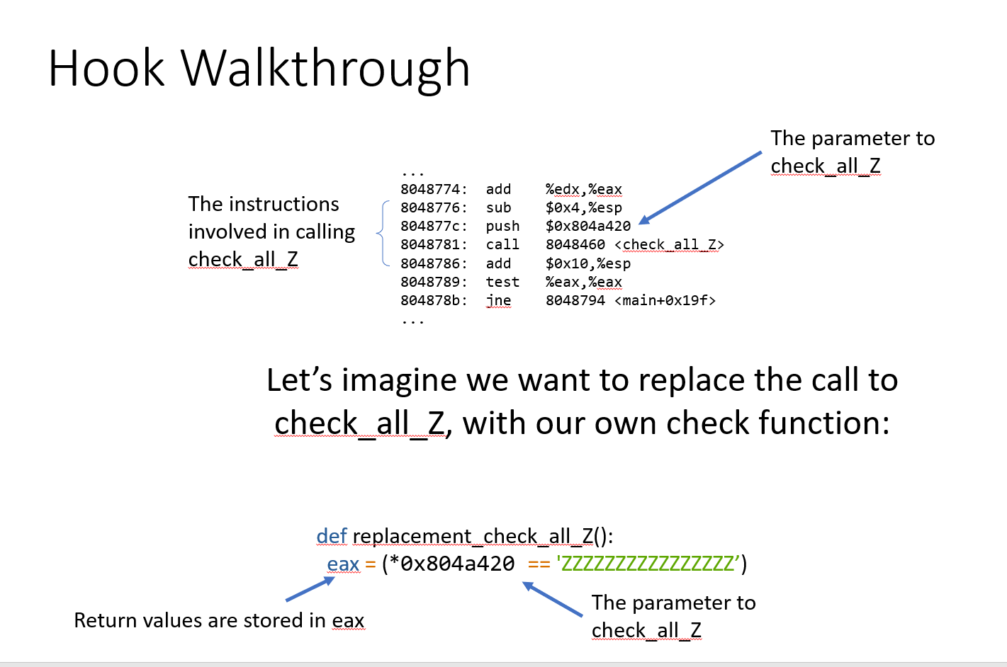 function in bytes, I can return from the hook just before the 'ret'