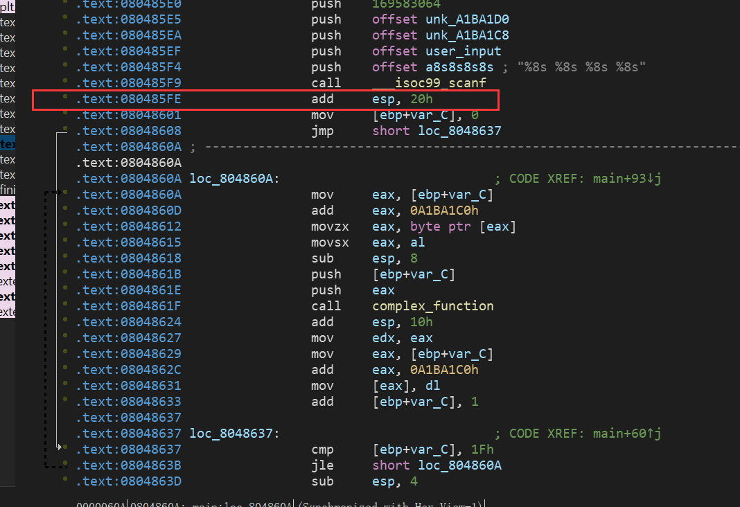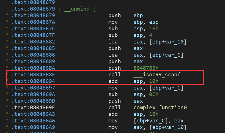 这里也是scanf读入数据,但是这次是储存在栈中,而不是寄存器