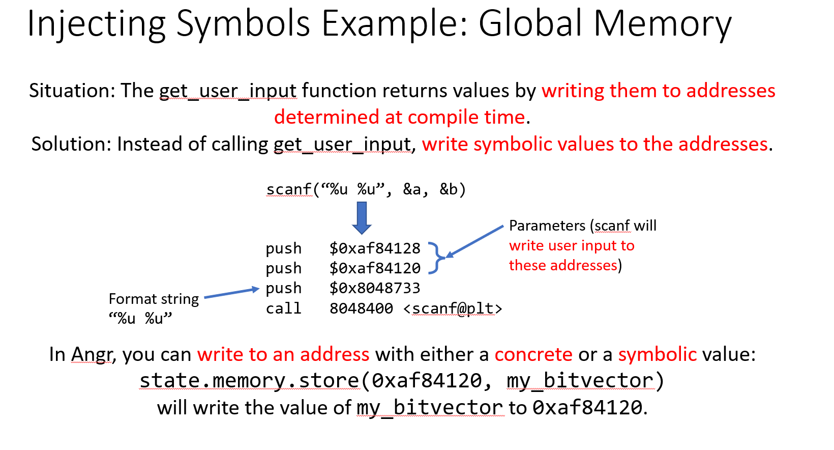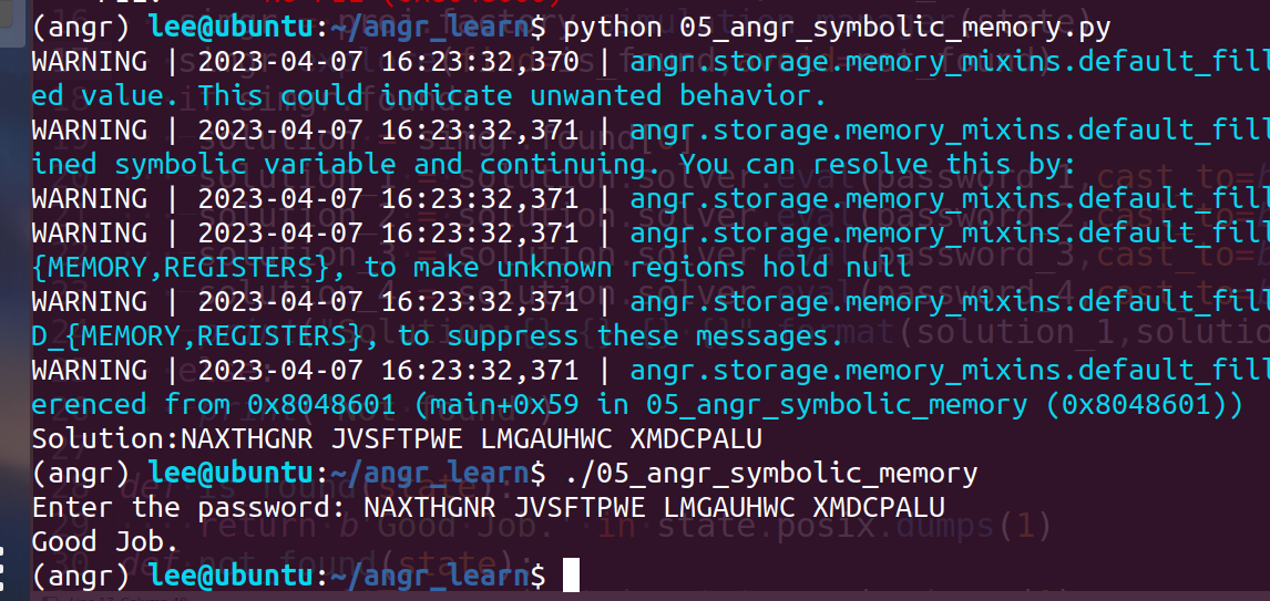 simgr.explore(find=check_addr)然后我们需要指定程序读入后存储的位置,这个是为了后续添加限制条件时对比,这里的password_address在上面也定义了,在创建符号向量时