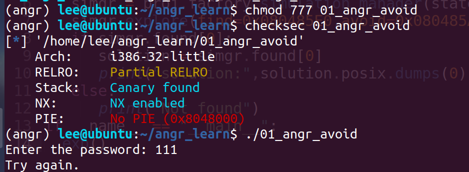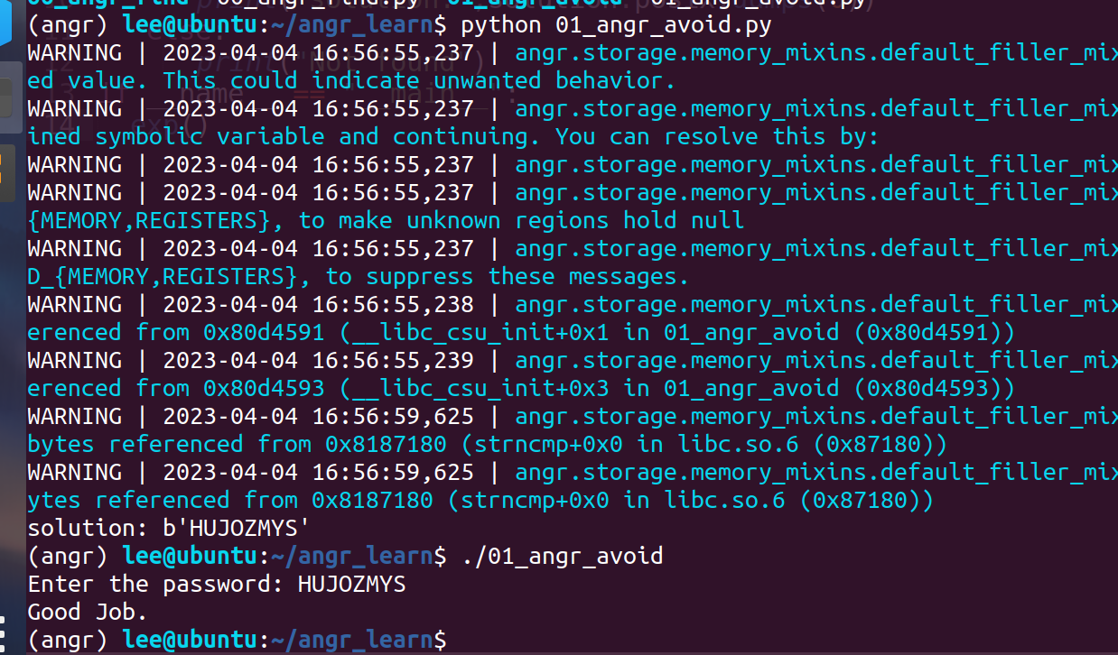 整个函数逻辑流程和00_angr_find一样,只不过加入了个分支avoid_me,倘若angr的explore中不加avoid参数,应该也能跑出来,只不过加了后直接会跳过那个avoid_me的分支,加快速度。