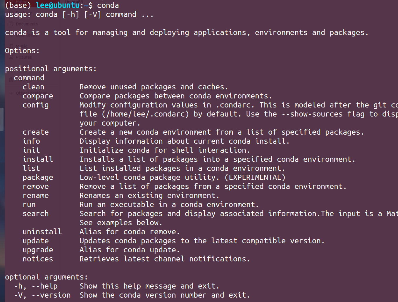 然后就可以命令行输入conda直接来使用了