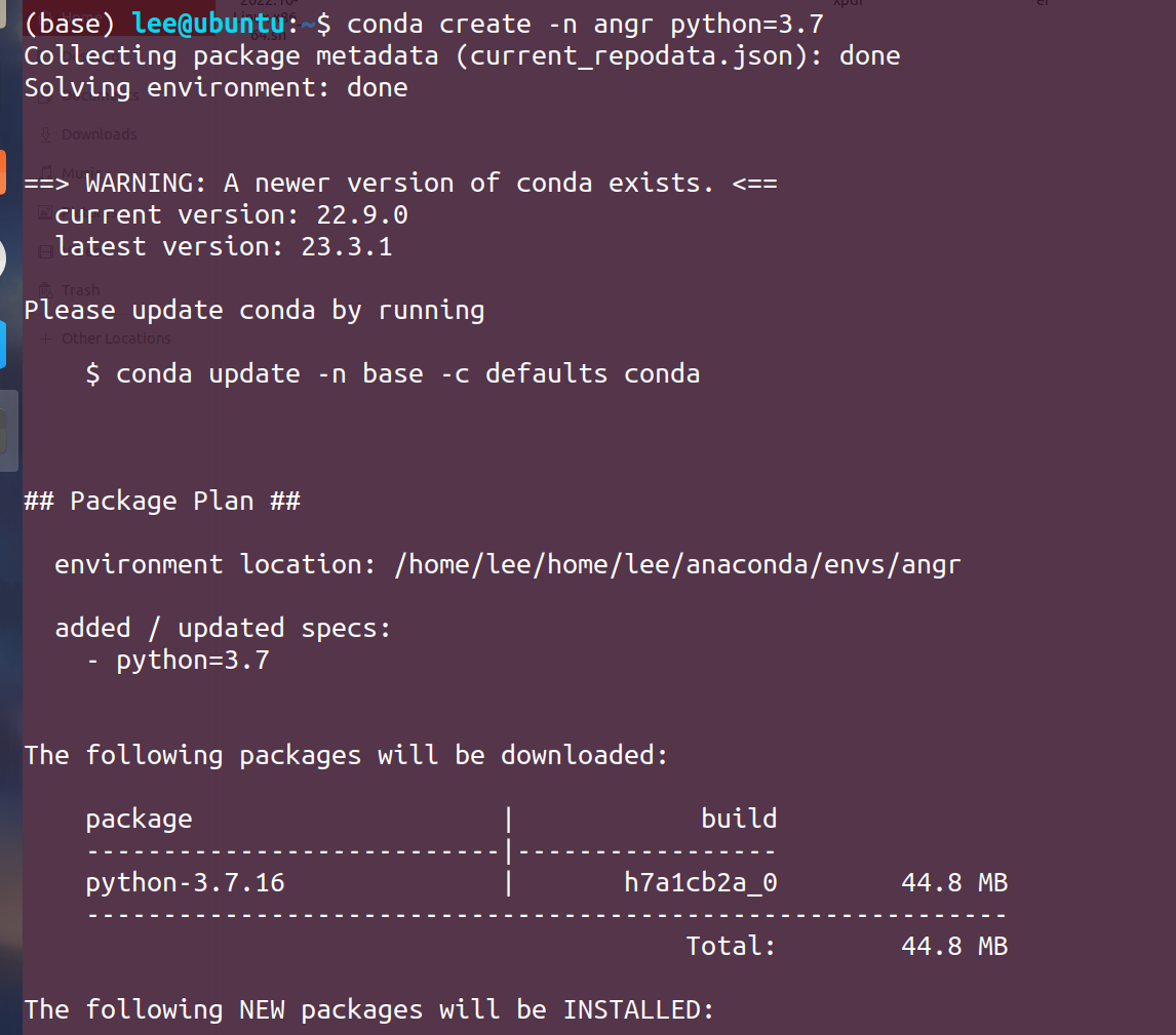 确认安装的路径,一般直接回车安装在默认的 /home/你的名字/anaconda