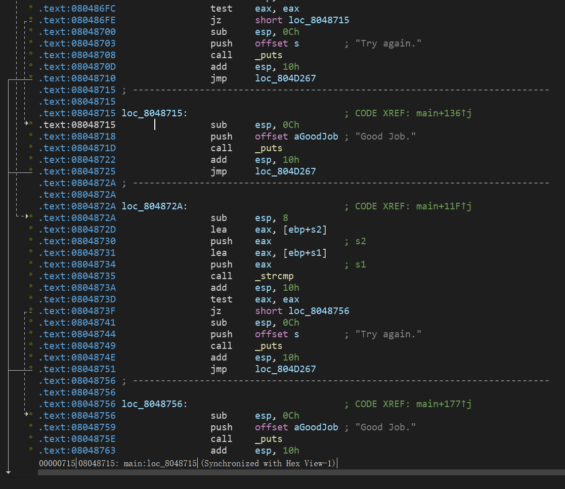 #然后就是读出内存中数据,对比,最后根据对比结果对eax的值进行设置,1为相同,0为不同,32位