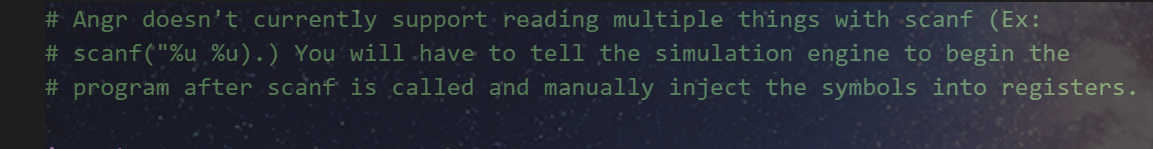 exp()这里解释下脚本: 首先这里引入了factory.blank_state,这是创建一个空的状态,因为本题是scanf来读取值,然后需要跳过这个scanf函数的读入,所以看代码: