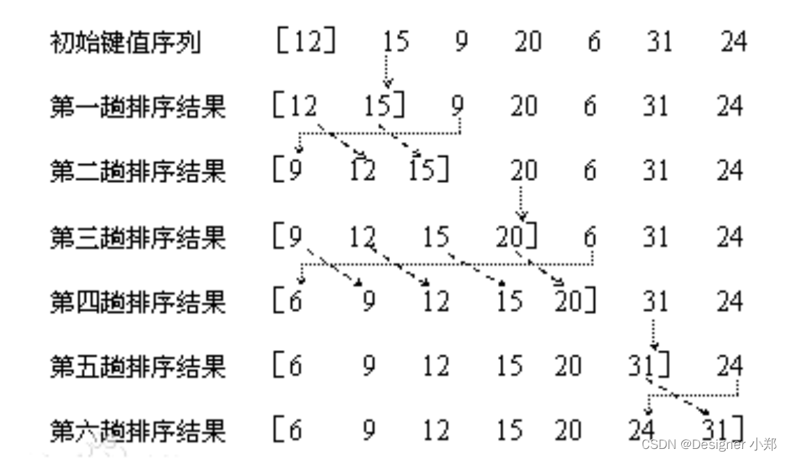 }以上代码使用插入排序算法对一个整数数组进行排序。