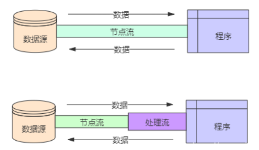下图就很形象地描绘了节点流和处理流,处理流是对节点流的封装,最终的数据处理还是由节点流完成的。