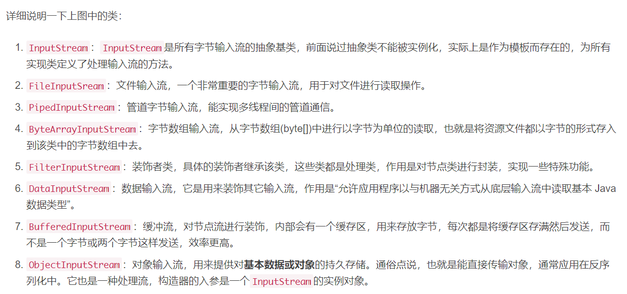InputStream 类有很多的实现子类,下面列举了一些比较常用的: