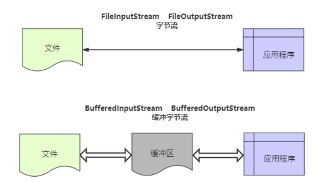 我们知道,程序与磁盘的交互相对于内存运算是很慢的,容易成为程序的性能瓶颈。减少程序与磁盘的交互,是提升程序效率一种有效手段。缓冲流,就应用这种思路:普通流每次读写一个字节,而缓冲流在内存中设置一个缓存区,缓冲区先存储足够的待操作数据后,再与内存或磁盘进行交互。这样,在总数据量不变的情况下,通过提高每次交互的数据量,减少了交互次数。