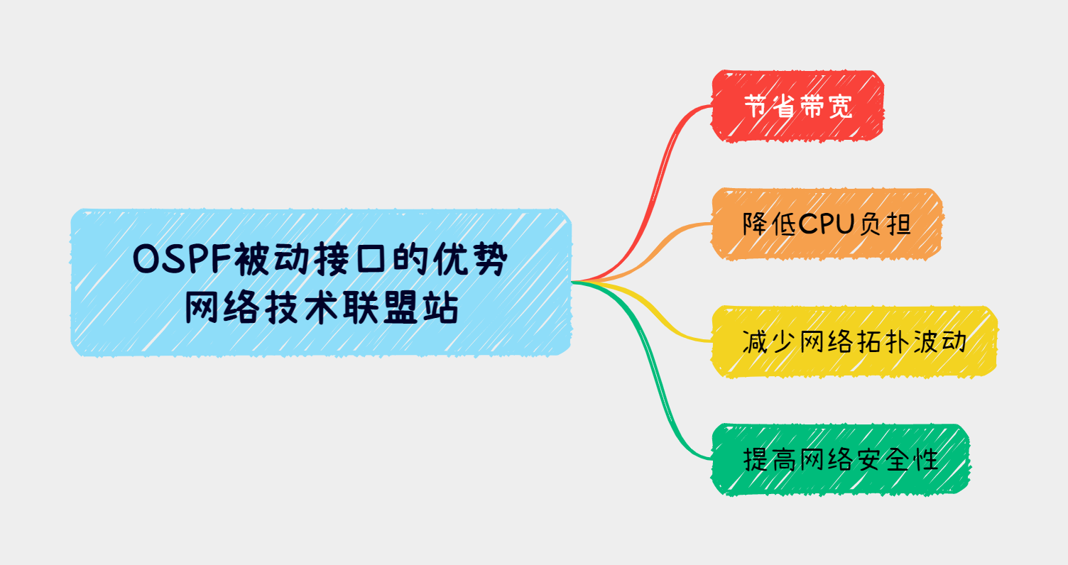 被动接口的概念是为了减少不必要的Hello消息,从而节省带宽和处理资源。在大型OSPF网络中,如果所有接口都发送Hello消息,可能会造成网络拥塞和不必要的开销。因此,通过使空闲的接口进入被动状态,可以优化OSPF网络的性能。