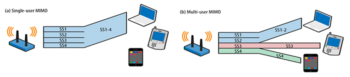 IEEE 802.11ac标准采用了多用户MIMO(MU-MIMO)技术,这是其最重要的创新之一。MU-MIMO技术允许无线接入点同时与多个设备进行通信,而不是像传统的MIMO技术一样只能与一个设备通信。通过MU-MIMO技术,无线接入点可以在同一时间段内为多个设备提供高速数据传输,从而提高网络的吞吐量和效率。
