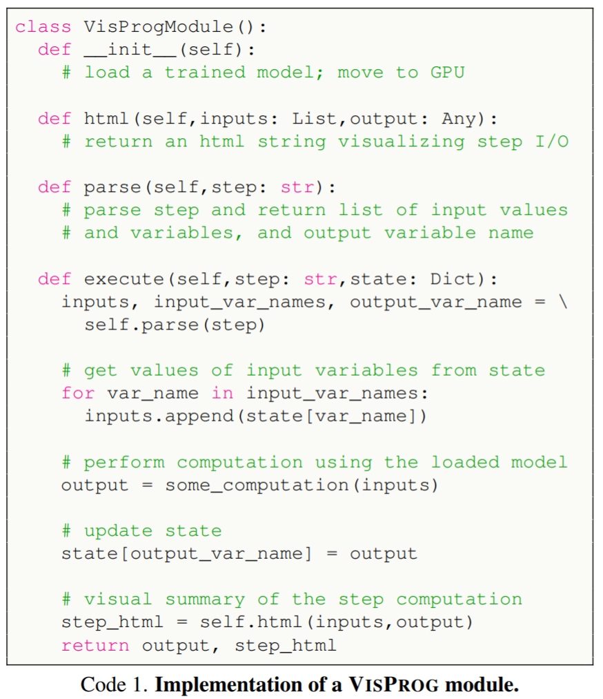 在 VISPROG 中,每个模块都被实现为一个 Python 类(见代码 1):