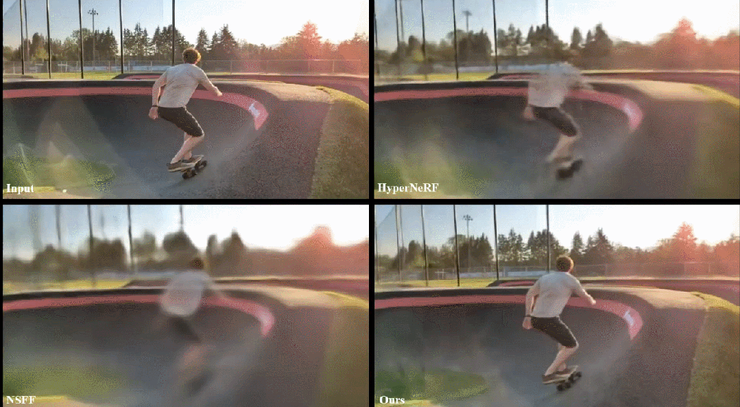 此前,基于时间变化的神经辐射场(也称为动态 NeRF)在这个任务上表现较好。然而,对于具有复杂物体运动和不受控制的相机轨迹的长视频来说,这些方法会产生模糊或不准确的渲染结果。