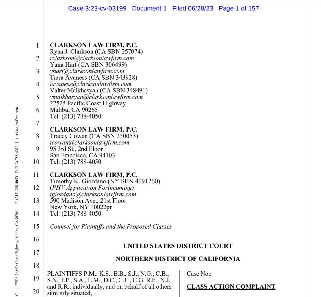 一家总部位于加州的克拉克森律师事务所用一份长达 157 页的诉讼将 OpenAI 告到法庭,该诉讼表明 OpenAI 在利润的驱使下,正在窃取大量个人信息来训练其人工智能模型,使其聊天机器人能够模仿人类语言。