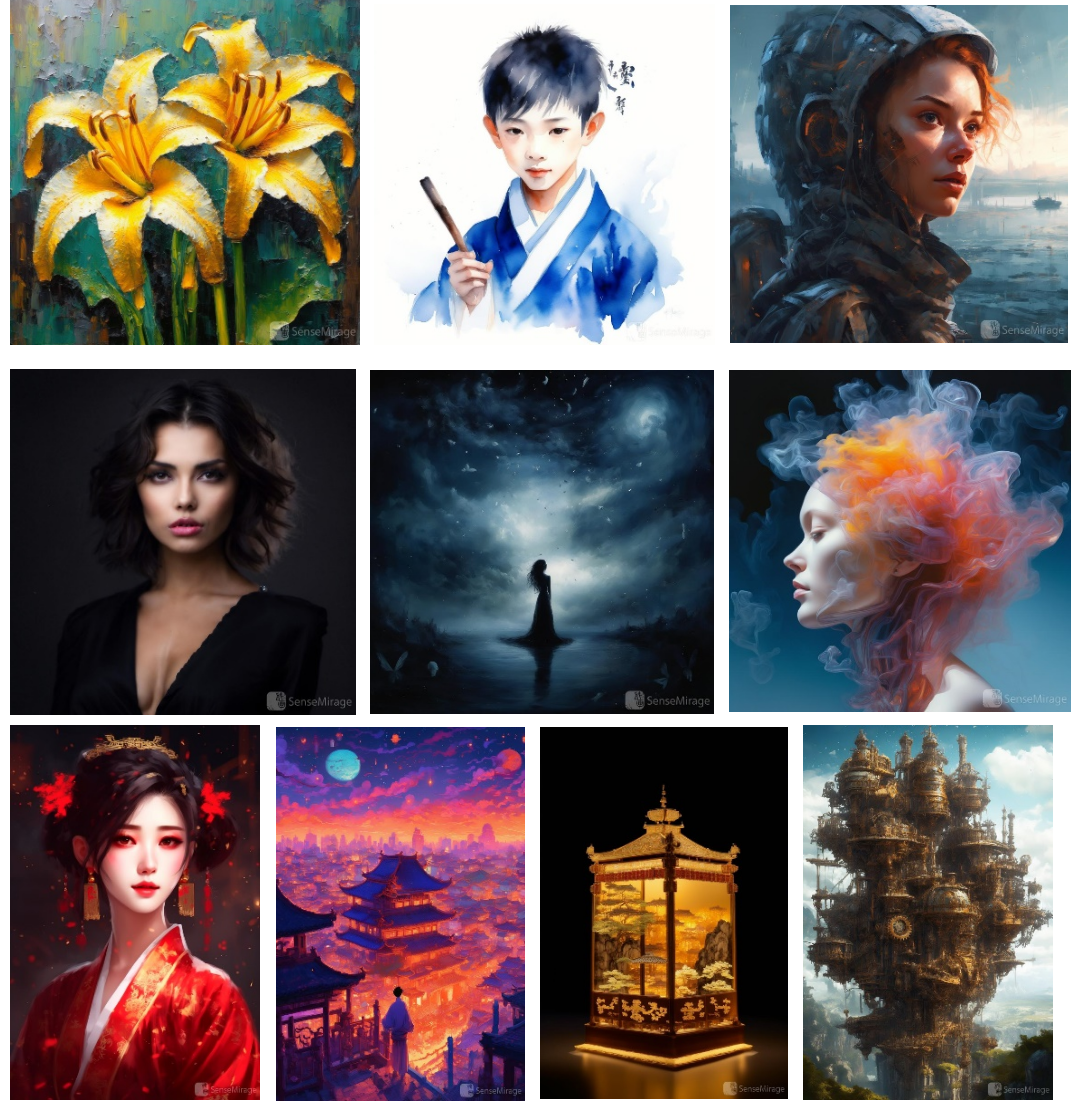 商汤大模型团队提出的文生图大模型RAPHAEL,可以生成具有高度艺术风格或者摄影风格的图片,速度极快。