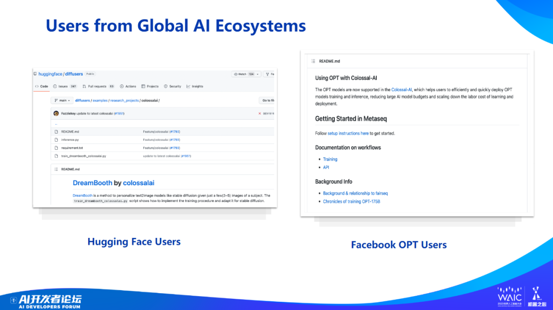 HuggingFace 世界公认的第二大 AI 生态,很多应用也是基于 Colossal-AI 做的。