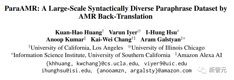题目:ParaAMR: A Large-Scale Syntactically Diverse Paraphrase Dataset by AMR Back-Translation作者:Kuan-Hao Huang, Varun Iyer, I-Hung Hsu, Anoop Kumar, Kai-Wei Chang and Aram Galstyan