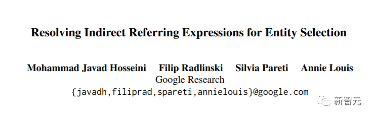 题目:Resolving Indirect Referring Expressions for Entity Selection作者:Mohammad Javad Hosseini, Filip Radlinski, Silvia Pareti and Annie Louis