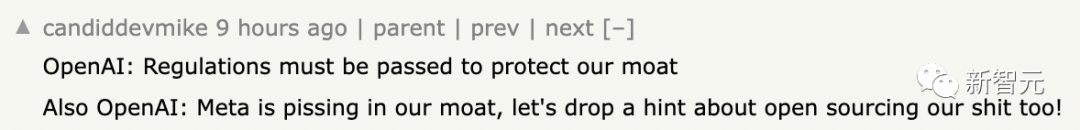 OpenAI:必须通过法规来保护我们的护城河。还是OpenAI:Meta在我们的护城河里撒尿,让我们也暗示一下我们的模型要开源吧。