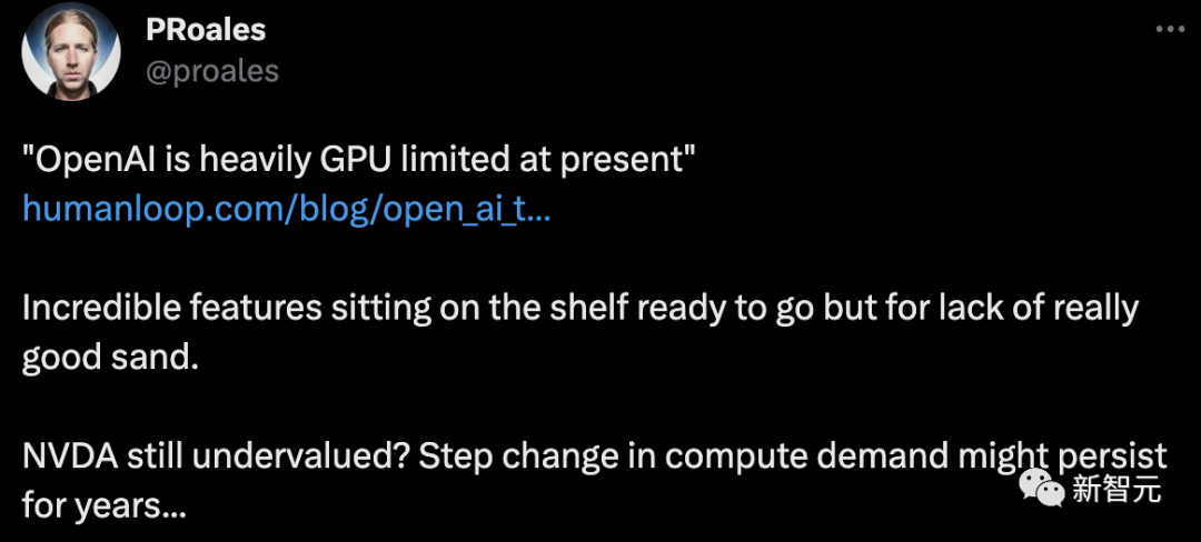 GPU短缺一事,有人认为是OpenAI资金链出了问题,买不起。