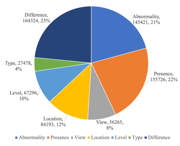 图 3:MIMIC-Diff-VQA 问题类型的统计数据