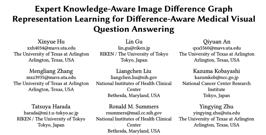 在今年的 KDD2023 上,来自德州大学阿灵顿分校,NIH 以及日本理化学研究所,东京大学,国立癌症研究中心的研究人员和放射科医生,联合设计了一个服务临床诊断的大型 VQA 数据集,MIMIC-Diff-VQA。