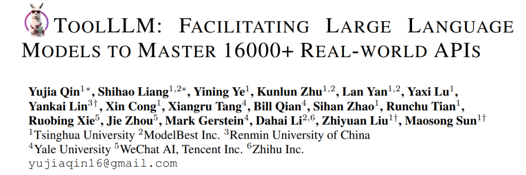 为了让开源 LLM 更好的使用外部工具,来自清华、人大、耶鲁、腾讯、知乎等多家机构的研究者联合撰写了论文,他们引入了一个通用工具使用框架 ToolLLM,该框架包括数据构建、模型训练和评估多项功能。