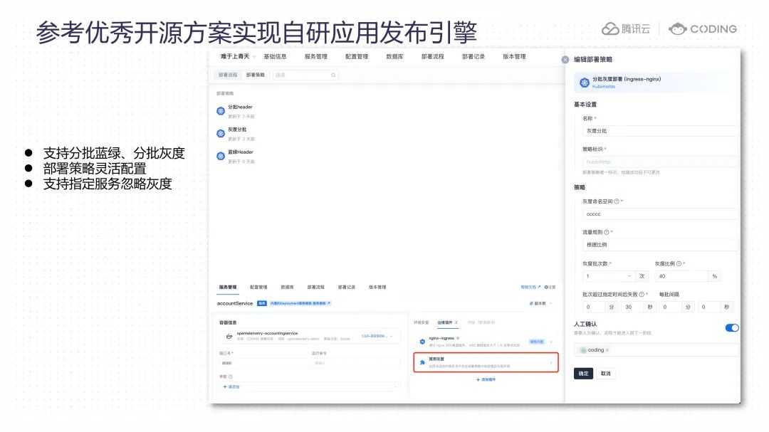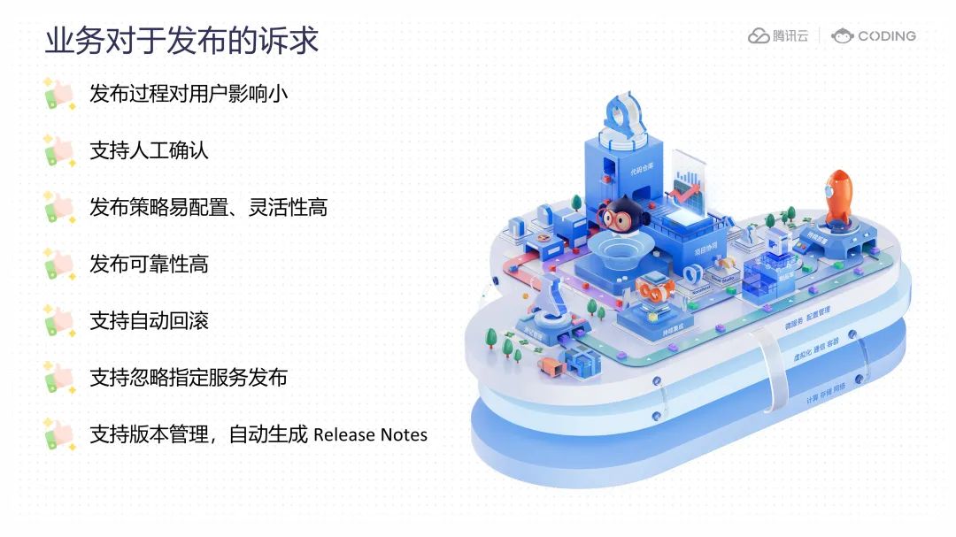 腾讯云 CODING 是面向企业的一站式研发管理解决方案,许多客户依赖我们的平台进行研发流程管理。由于服务始终处于使用中,我们需要确保任何发布活动都几乎无需停机,并且对用户几乎无感知。