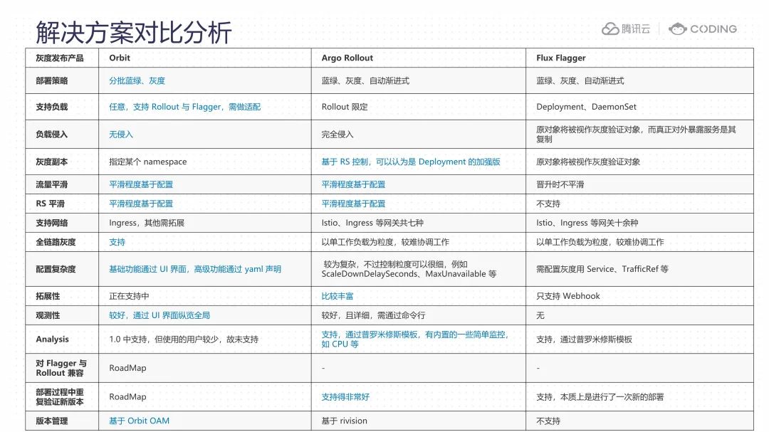 不同的工具拥有各自的优点和特性。这里,我们将针对 Orbit、Argo Rollouts 和 Flux Flagger 这三款工具进行深入的对比和分析,尤其是聚焦于我们自研的 Orbit: