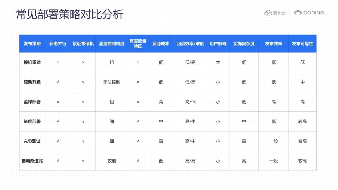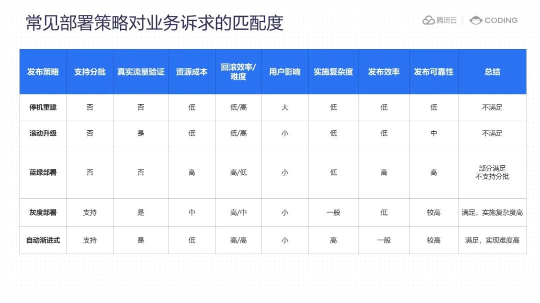现在让我们对这些常见的部署策略做简要的对比分析。