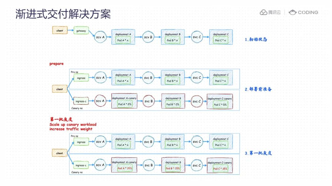 根据以上业务诉求,自动渐进式发布显然成为了最适合的部署策略,它可以为进一步优化发布过程提供可能性,实现真正的自动化、无感知的发布,最大程度地提升用户体验。