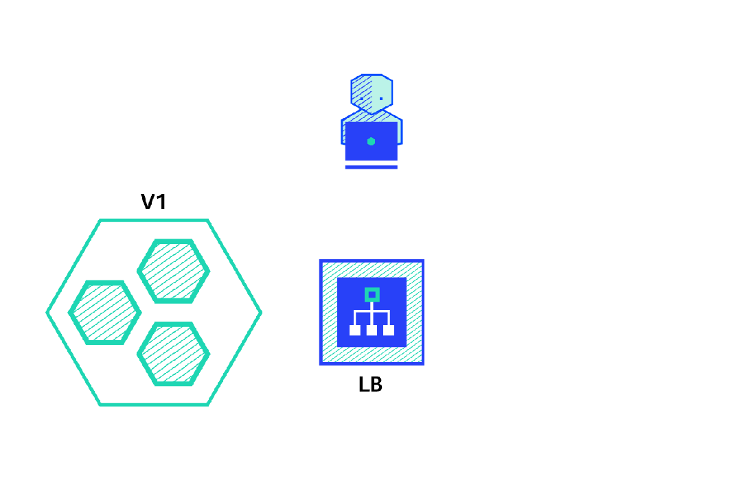 "金丝雀发布"是对“蓝绿发布”的一种优化策略,它借鉴了矿工使用金丝雀作为煤矿安全监测的方法。这种发布策略先将一小部分流量从当前版本的集群(我们称之为绿色集群,或者 V1)切换到新版本的集群(我们称之为蓝色集群,或者 V2)。这样我们就能在生产环境中对新版本进行测试。