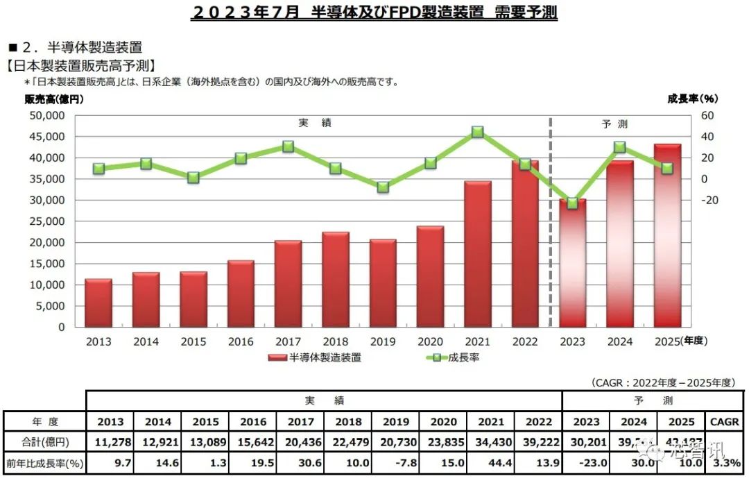 SEAJ表示,2023-2025年度期间日本芯片设备销售额的年均复合增长率(CAGR)预估为3.3%。