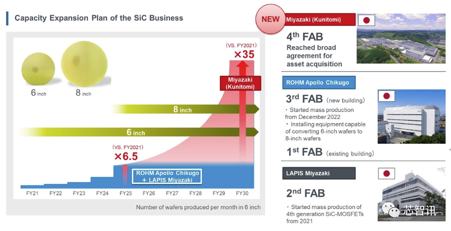 Rohm预计,新的生产基地预计到2030财年满产,届时碳化硅产能将达到2021财年的35倍。