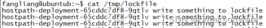 kubectl exec pods/hostpath-deployment-65cddc7df8-ltbgs -it -- tail -f /tempdir/lockfilehostpath-deployment-65cddc7df8-9qtlv write something to lockfile hostpath-deployment-65cddc7df8-9qtlv write something to lockfile hostpath-deployment-65cddc7df8-9qtlv write something to lockfile ……