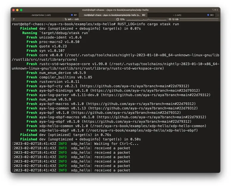如果你觉得编写 Rust 代码更舒服的话,aya-rs 的维护者提供了一个 Rust 开发人员工具链,包含一本带有教程的图书。书中的样例实现了一个类似的 XDP 网络流量场景,可以直接从 Cargo 构建链中运行,使开发过程更加高效。