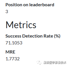 评估指标包括:1)预测与金标准之间的平均径向误差(MRE);2) 2.0 mm 的成功检测率 (SDR)。