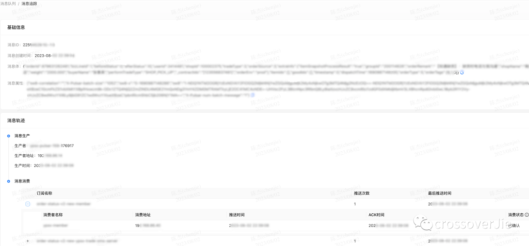 当然仅仅只有这个面板依然是不够的,后续我们又开发了可以通过 messageId 查询它的整个生命周期,包括:
