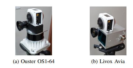 使用图6中展示的旋转和非重复扫描LiDAR(Ouster OS1-64和Livox Avia)以及针孔和全景相机(Omron Sentech STC-MBS202POE和Kodak PixPro 4KVR360)的四种组合来评估所提出的校准工具箱。对于每种组合,我们在室内和室外环境中记录了15对LiDAR点云和相机图像,并针对每对运行了所提出的校准过程(即单次校准)。作为参考,使用高精度反射球靶标估计了LiDAR-相机变换,如图7所示。我们手动标注了目标的2D和3D位置,以找到最小化目标重投影误差的LiDAR-相机变换,通过视觉检查确认估计的变换密切描述了相机的投影,我们将估计的变换用作“伪”真值。