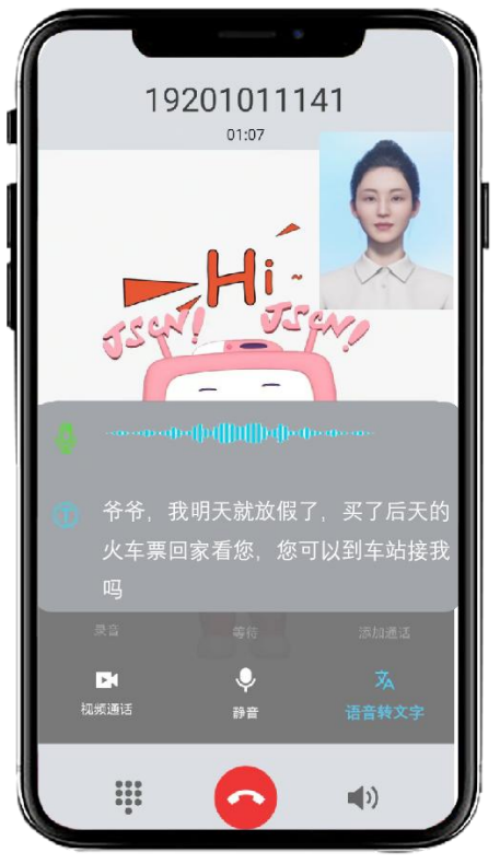 在通话过程,基于语音识别技术,自动识别对方的说话内容,并以文字形式展现在屏幕上。