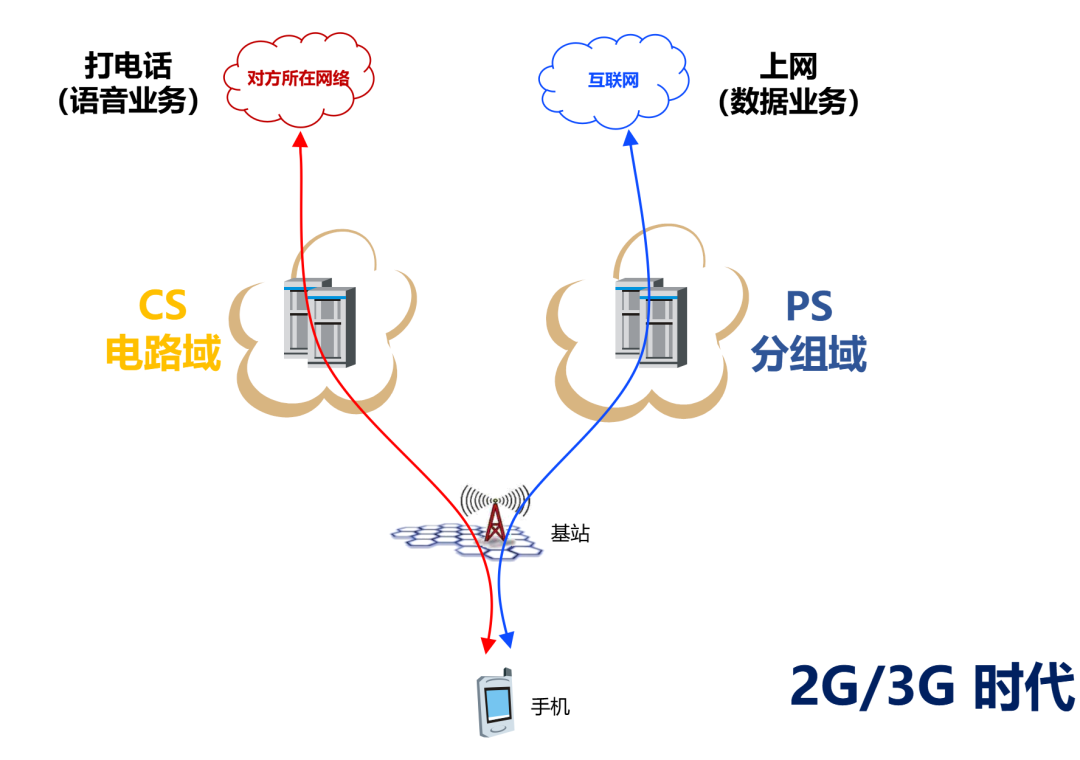 移动通信网络也顺应了这样的发展趋势。于是,从3G开始,重点发展数据业务,网络从“电路域”,转向“分组域”,逐渐IP化。