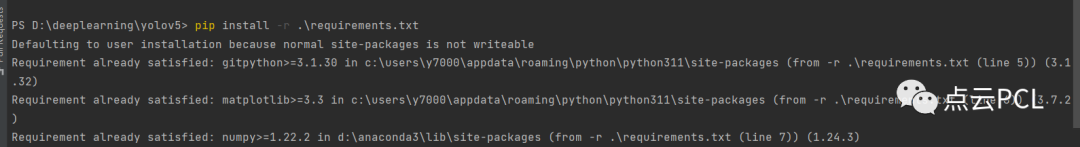 配置完成后我们需要在终端运行 pip install -r requirements.txt 安装必要的依赖项