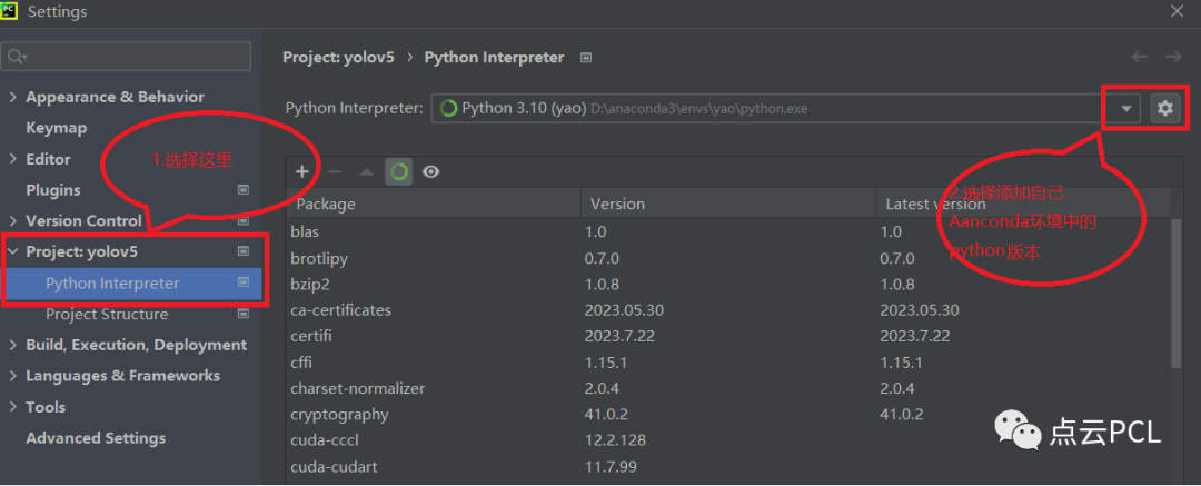 进行工程配置,选择File->Setting选择anaconda环境中的python版本,如果使用默认的工程配置将会出现安装错误。