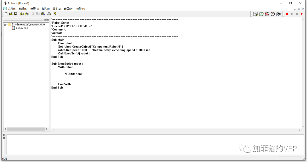录制的结果为VBS代码,我们可以转换为VFP代码即可。