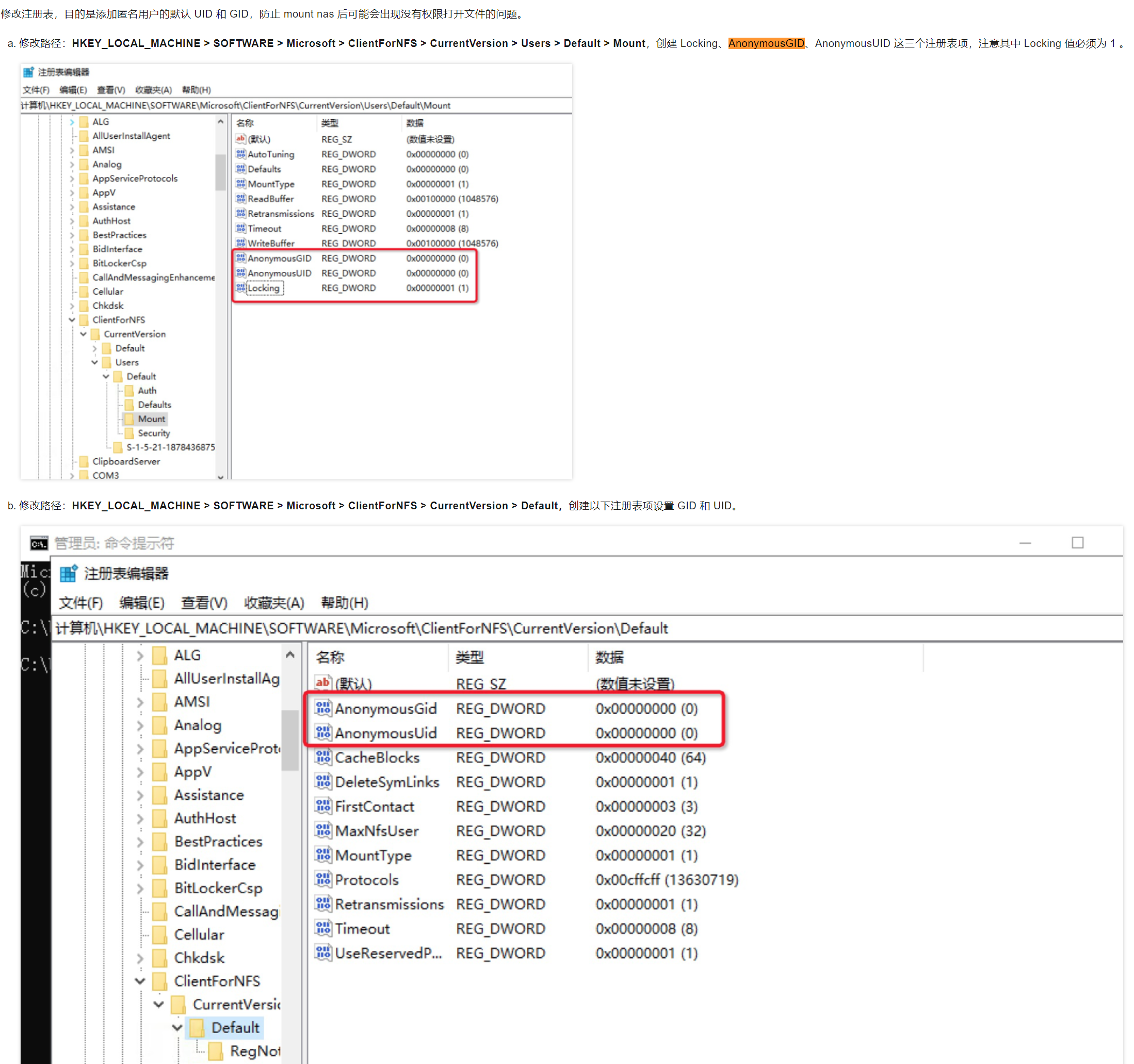 可以导入.reg文件(下面内容贴到记事本文件,另存为nfs_cfs.reg双击导入即可),也可以reg add命令