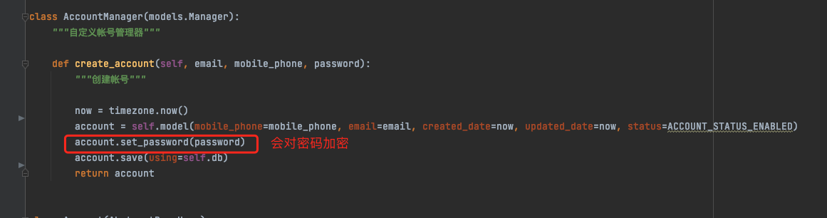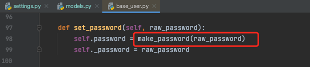 为什么我使用的set_password(), 加密之后就必须要获取原来Django项目的环境呢?我们看一下源码就明白了了