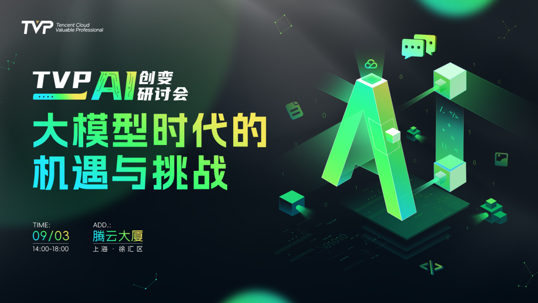 9 月 3 日(周日)下午 14:00,「大模型时代的机遇与挑战」腾讯云 TVP AI 创变研讨会将在腾讯云 TVP 视频号等多平台同步直播, 扫描「海报二维码」或点击「海报下方视频号卡片」即可报名,快来线上和 AI 大咖一同交流吧!